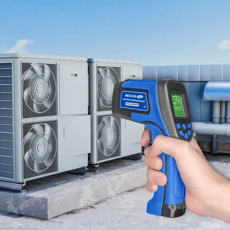 Пирометр МЕГЕОН 16620 — это современное инфракрасное устройство для бесконтактного измерения температуры, разработанное с учётом потребностей как бытовых пользователей, так и специалистов технических профессий. Прибор способен определять температуру в широком диапазоне от -50 до 750 градусов Цельсия, что делает его универсальным решением для работы с различными поверхностями и условиями, включая охлаждённые объекты, нагревательные элементы, системы отопления и вентиляции, а также автомобильные агрегаты.
